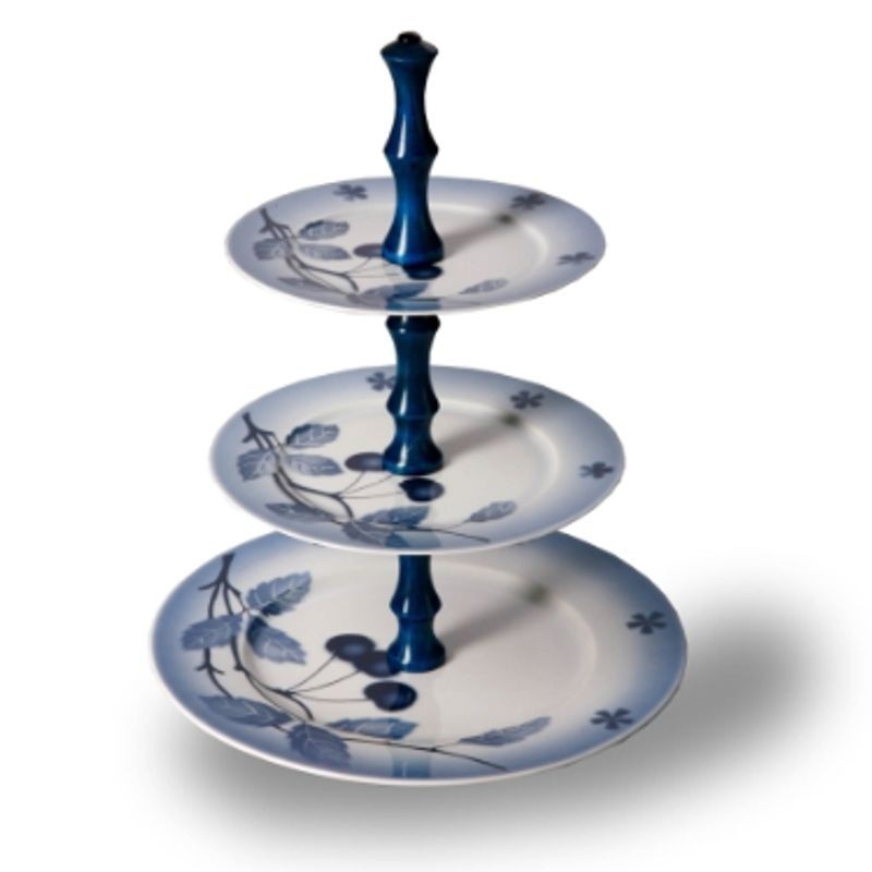 Karlovarský porcelán Etažerka Blue cherry - trojposchodový tanier doplnený dreveným kľúčom.