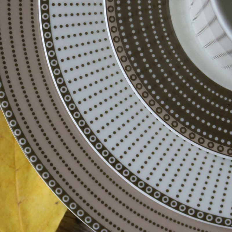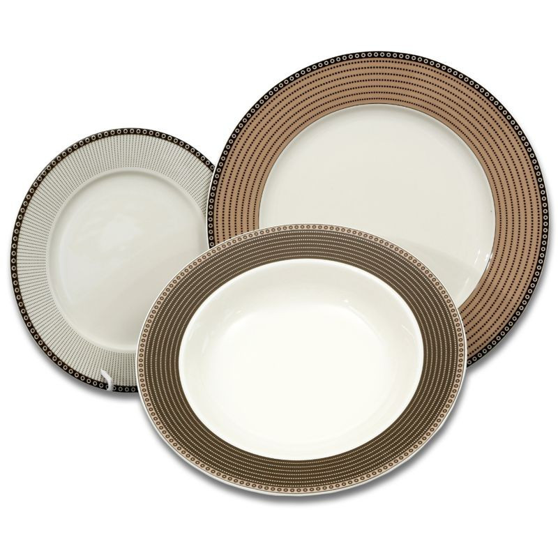 Karlovarský porcelán Cairo ivory hnedé kruhy tanierová súprava 18 dielov.