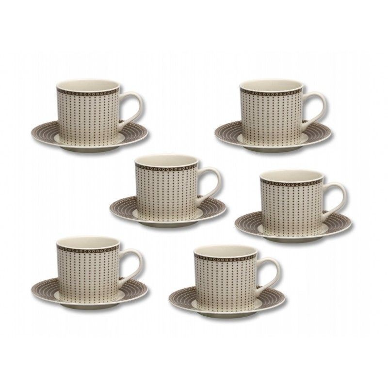 Šálky s podšálkami vysoké 135 ivory Cairo hnedo-béžové kruhy 12 dielne. Obsahuje: 6x šálka, objem 170 ml, 6x podšálka, priemer 135 mm