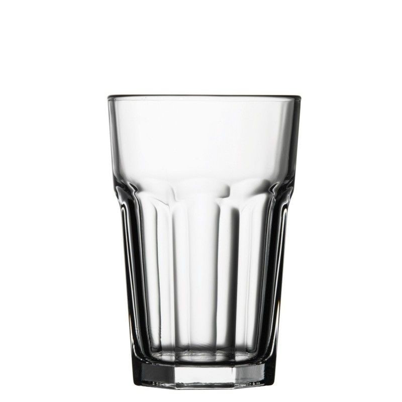 CASABLANCA číra pohár 420 ml. Pohár na vodu, džúsy, limonády a miešané nápoje. Séria Casablanca má pravdepodobne najznámejší tvar pohárov na svete. Sklo pri tejto sérií je vysokotvrdené, čo znamená že je odolnejšie voči nárazom a náhlym teplotným rozdielom. Poháre sú vhodné na horúce nápoje. V prípade rozbitia sa roztrieštia na malé tupé kúsky.