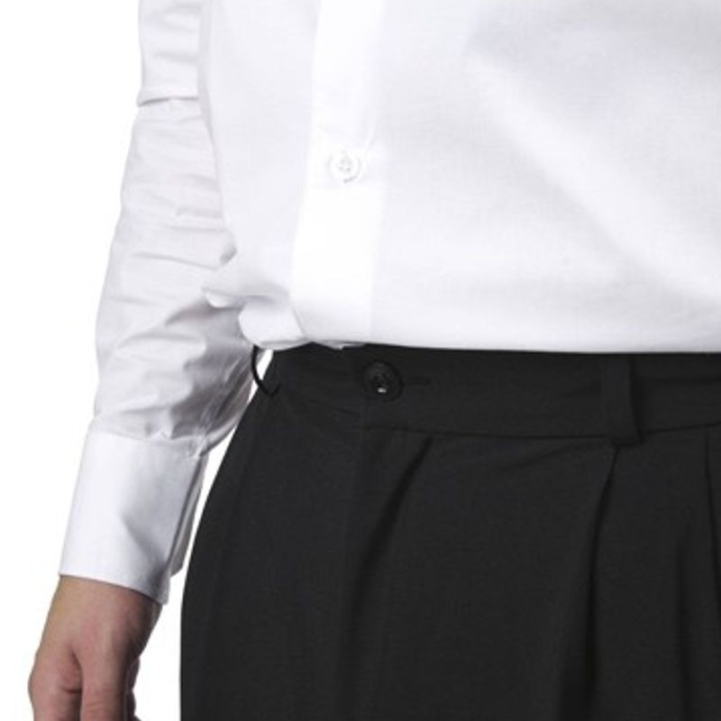 Klasické čierne pánske nohavice. Pánske čašnícke nohavice, klasický strih, 2 predné a 1 zadné vrecko, pútka na opasok, 100% polyester, pranie na 40°C.