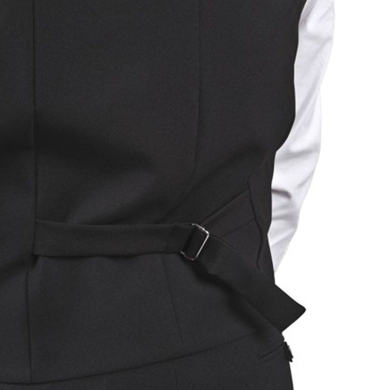 Pánska vesta s čiernou fazónkou, pánska vesta na 5 gombíkov, dve predné vrecká, zadný diel v čiernej farbe, sťahovanie na pracku vzadu, 100% polyester, pranie na 30°C.