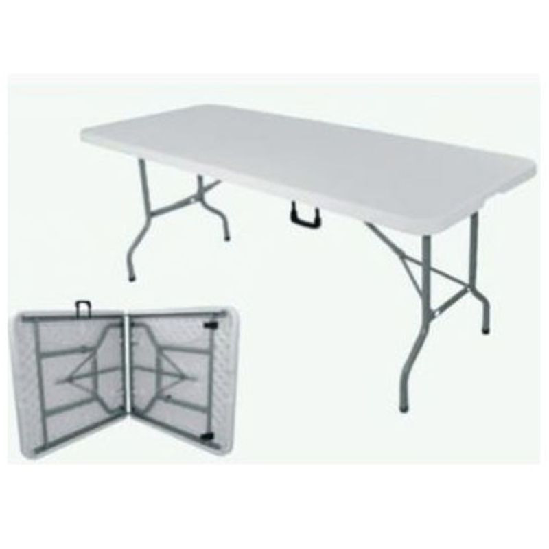 Párty stôl, rozmery: 1840 x 750 x 740 mm, lakovaná ocelová konštrukcia, pracovná doska plastová- HDPE, možnosť zloženia, rozmer po zložení: 92x76x9,5 cm, hmotnosť 17,5 kg