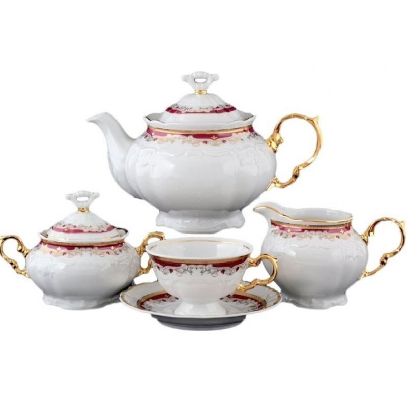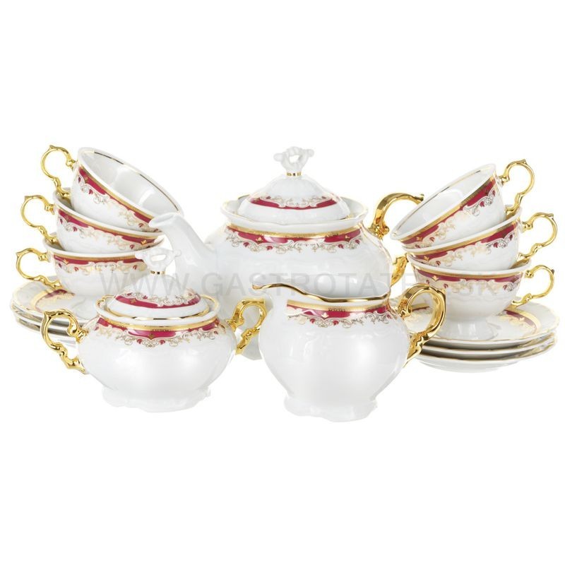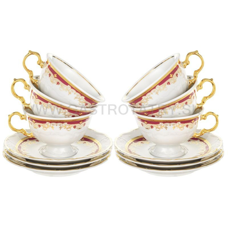 Karlovarský porcelán Maria Louise - Červeno - zlatá čajová súprava 17 D, nie je vhodná do mikrovlnej rúry a umývačky riadu.