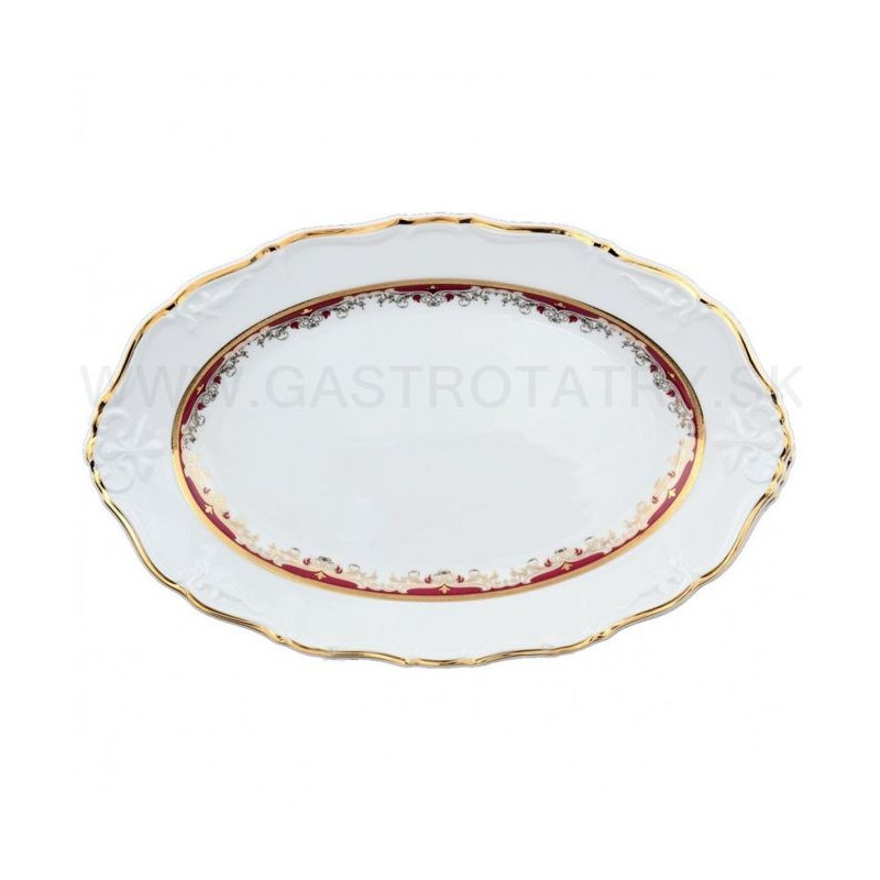 Karlovarský porcelán - MARIE-LOUISE mlsa oválna 34 cm červeno-zlatá. Nie je vhodná do umývačky riadu ani do mikrovlnnej rúry.