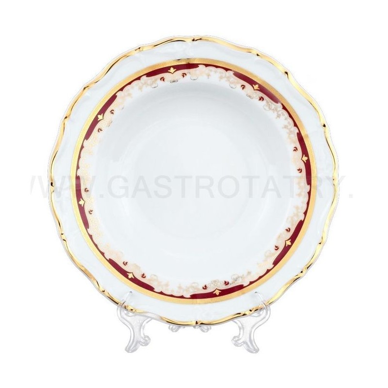 Karlovraský porcelán - MARIE-LOUISE tanier hĺboký 23 cm zlato červený dekor. Nie je vhodný do umývačky riadu ani do mikrovlnnej rúry.
