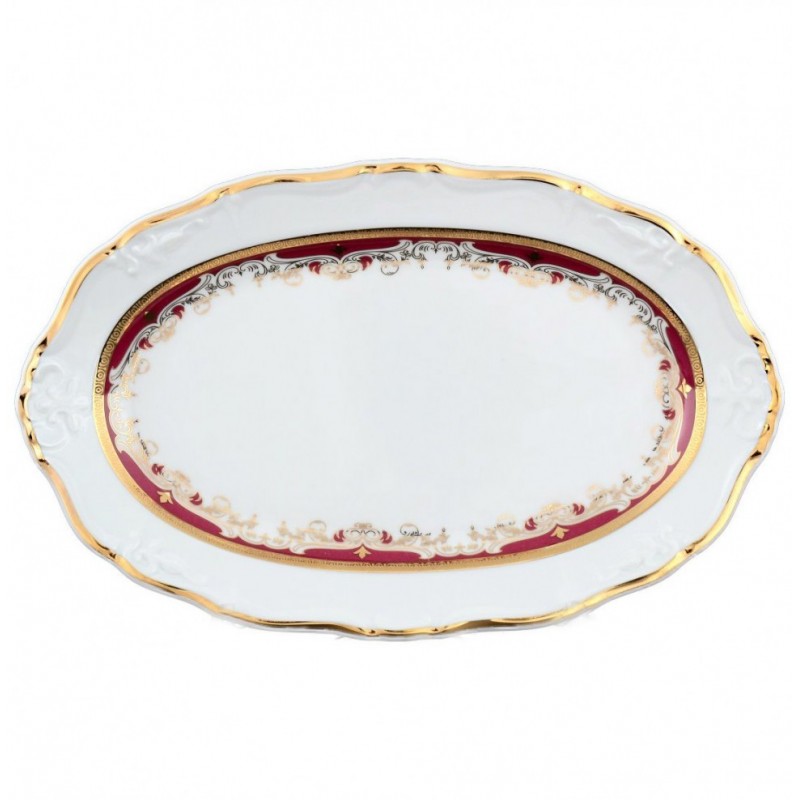 Karlovarský porcelán - MARlE-LOUISE misa oválna 24 cm červeno-zlatá. Nie je vhodná do mikrovlnnej rúry ani do umývačky riadu.