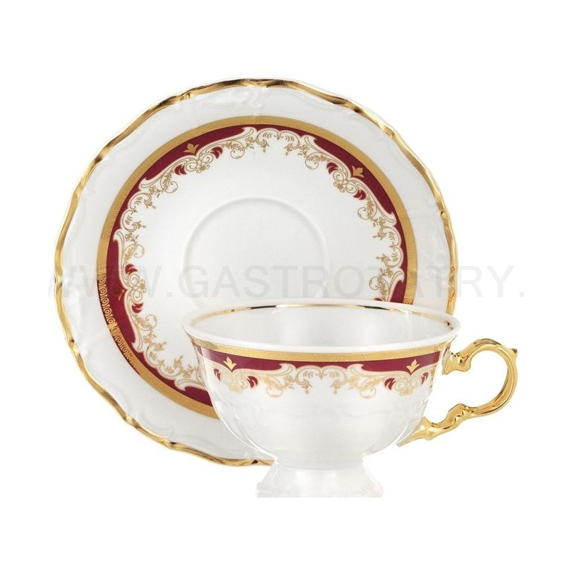 MARIE-Louise šálky s podšálkami 155 červeno-zlatá. Zloženie: 6x šálka, objem 230 ml, 6x tanierik 155 mm.