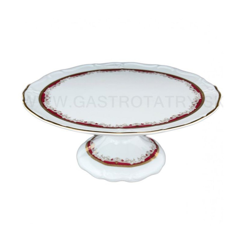 Karlovarský porcelán - Maria - Louise tanier tortový na nohe červeno-zlatá 32 cm. Nie je vhodný do umývačky riadu ani do mikrovlnnej rúry.