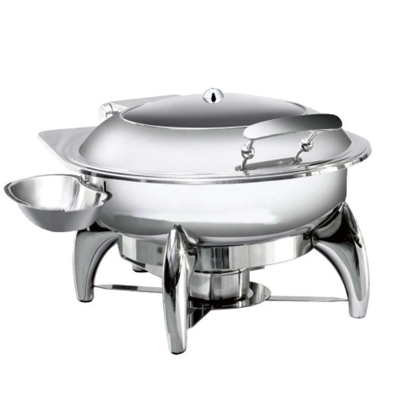 Chafing, objem 5 l guľatý, sklo, výklopné veko, model AT-52293, rozmery 48,5x52x30 cm, výklopné priehľadné veko, 1 x nádoba na horákovú pastu, odkladacia miska