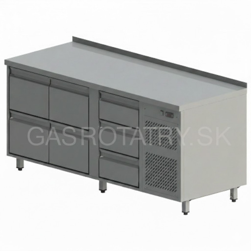 Chladiaci pult na gastronádoby, rozmer (ŠxHxV) 1800x700x850 mm, kapacita 461 l, príkon 365 W, 7x zásuvka pre GN 1/1 ▪ teplotný rozsah +2°C / +8°C pri okolitej teplote max. 32°C ▪ napájanie 230V / 50Hz, chladiace médium R134a