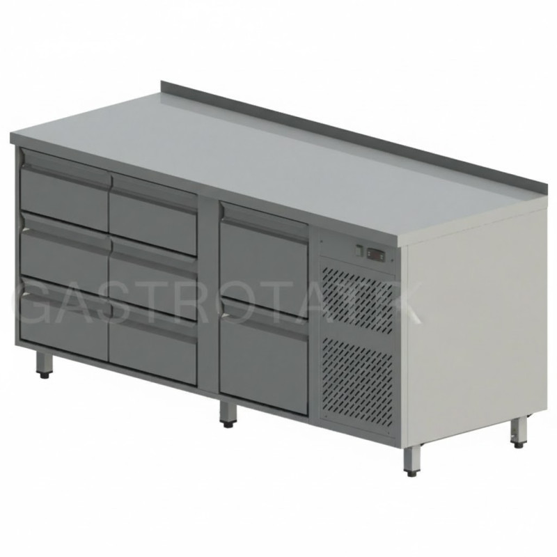 Chladiaci pult na gastronádoby, rozmer (ŠxHxV) 1800x700x850 mm, kapacita 461 l, príkon 365 W, 8x zásuvka pre GN 1/1 ▪ teplotný rozsah +2°C / +8°C pri okolitej teplote max. 32°C ▪ napájanie 230V / 50Hz, chladiace médium R134a