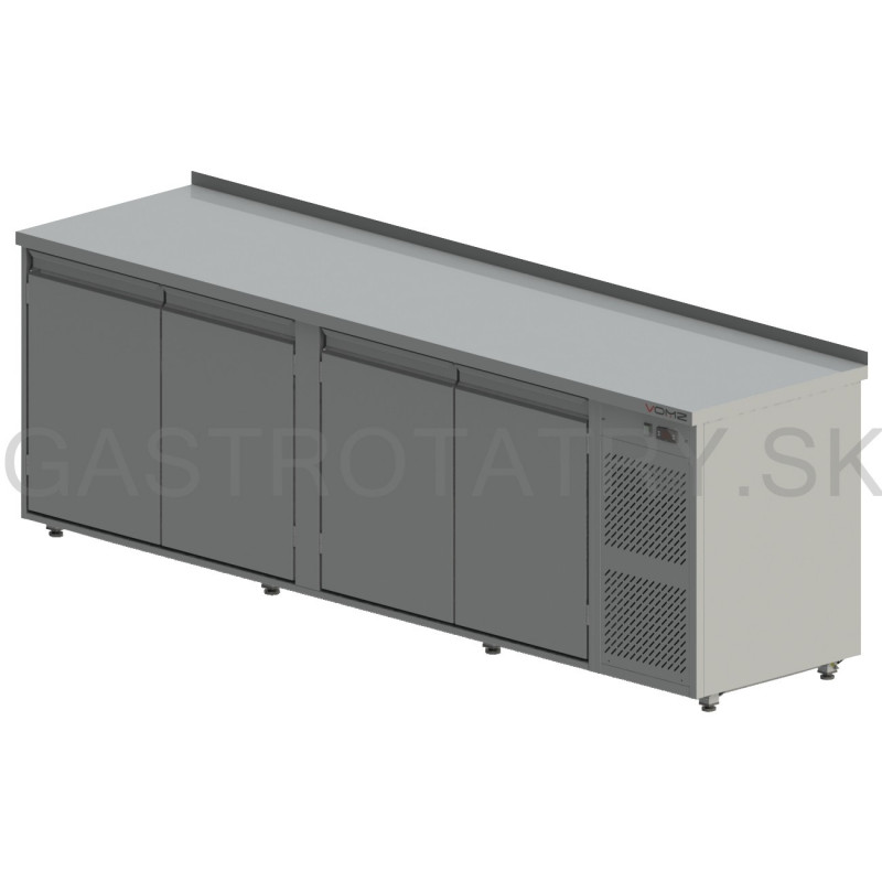 Chladiaci pult na nápoje, rozmer (ŠxHxV) 2690x700x900 mm, kapacita 869 l, príkon 480 W, pohyblivá polica na nápoje ▪ teplotný rozsah +2°C / +8°C pri okolitej teplote max. 32°C ▪ napájanie 230V / 50Hz, chladiace médium R134a, nasávanie a výfuk spredu