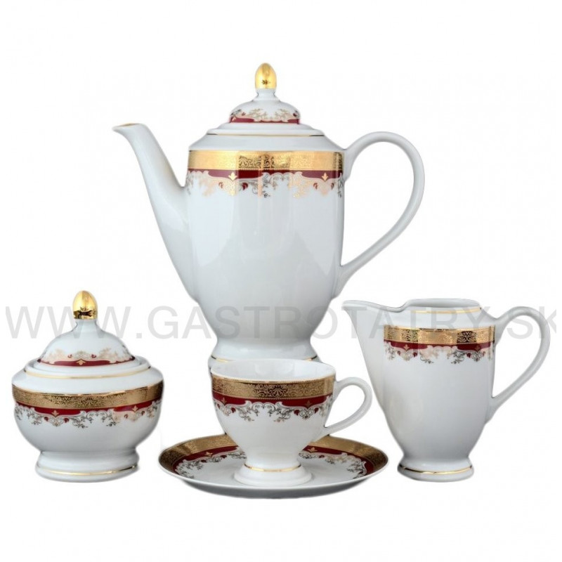 Karlovarský porcelán Christine červeno zlatá kávová súprava 17 D, nie je vhodná do mikrovlnej rúry a umývačky riadu.