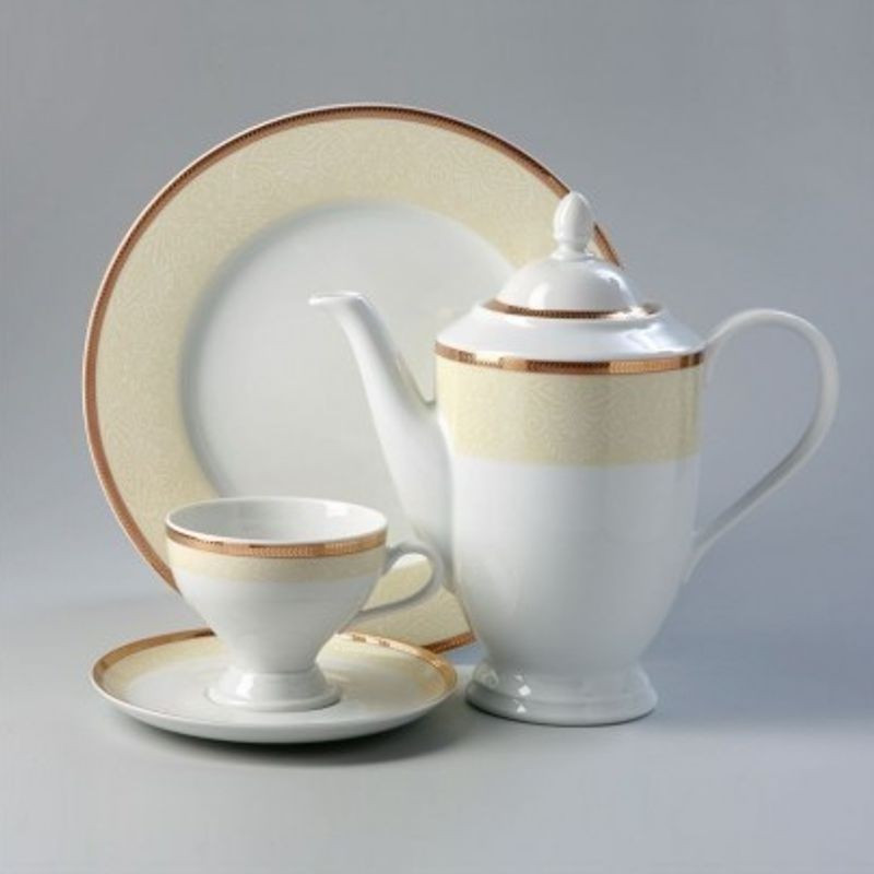 Obsahuje: 1 x kávová kanvica s viečkom, 1 x cukornička s viečkom, 1 x mliekovka, 6 x šálka s tanierikom 145 cm,