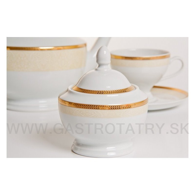 Karlovarský porcelán Christine žlto zlatá kávová súprava 17 D, nie je vhodná do mikrovlnej rúry a umývačky riadu.