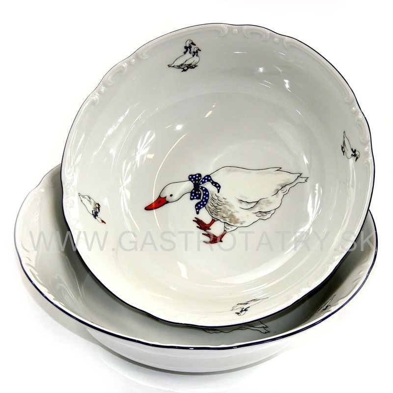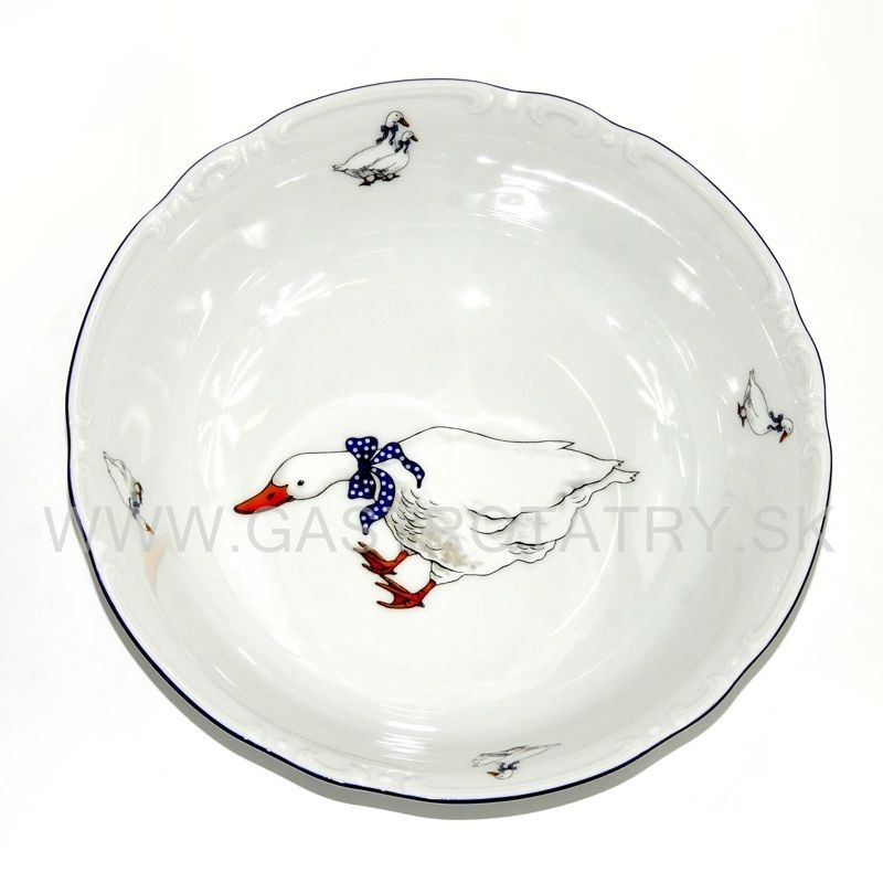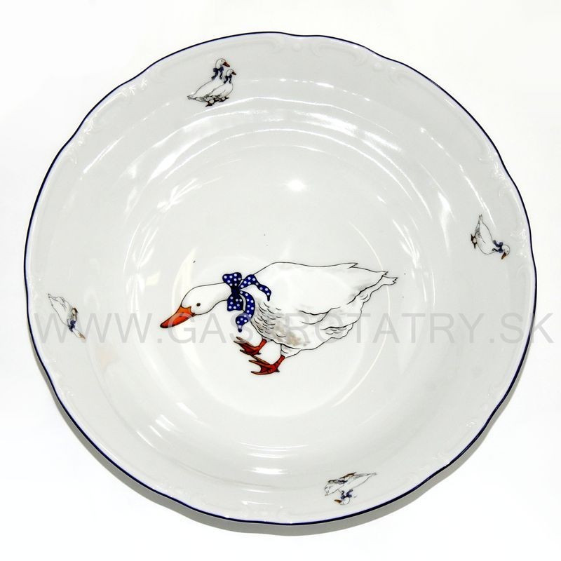 Karlovarský porcelán - CONSTANCE miska kompótová priemer 23 cm dekor husi. Je vhodná do mikrovlnnej rúry a umývačky riadu.