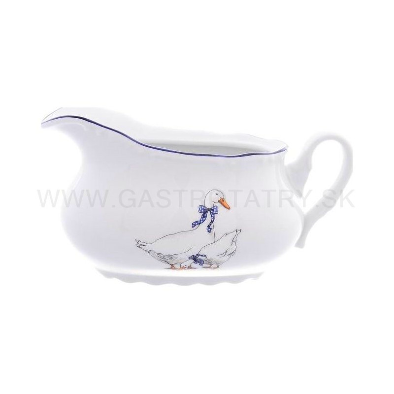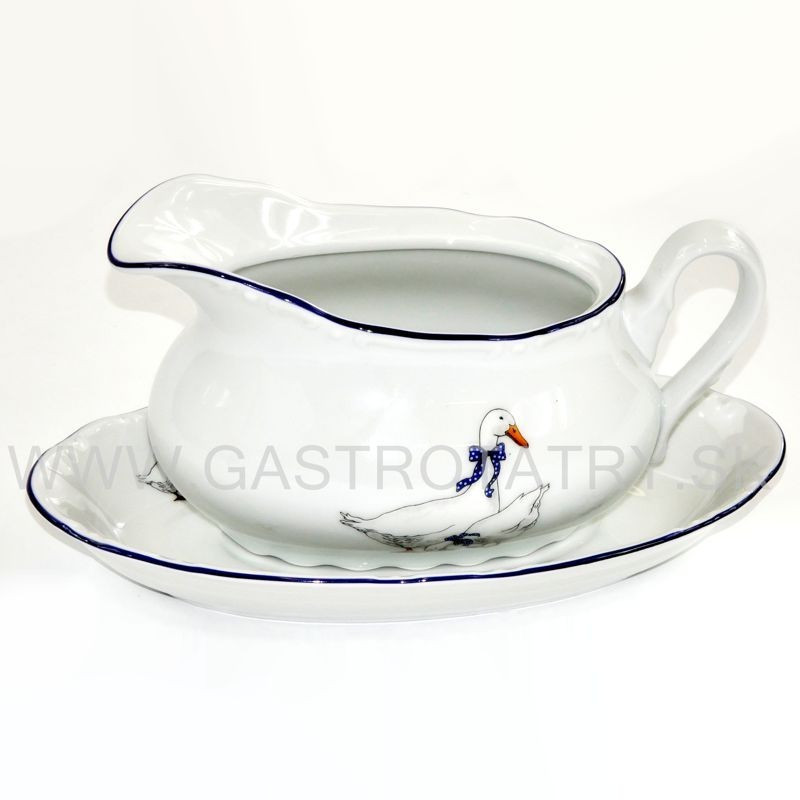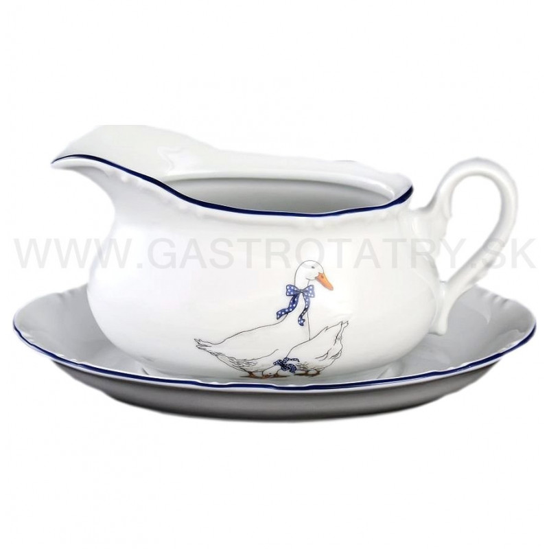 Karlovarský porcelán - CONSTANCE Omáčnik oválny 0,40 s podšálkou dekor Husi. Je vhodná do mikrovlnnej rúry a umývačky riadu.