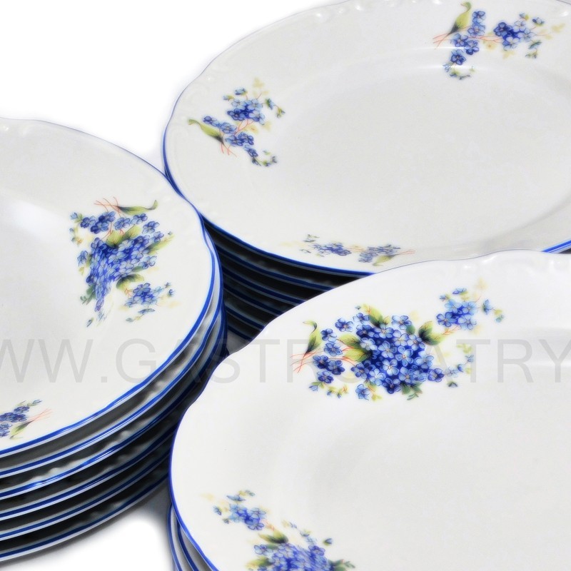 CONSTANCE nezábudka modrá linka tanierová súprava - 18 dielov. je vhodná do mikrovlnnej rúry a umývačky riadu.