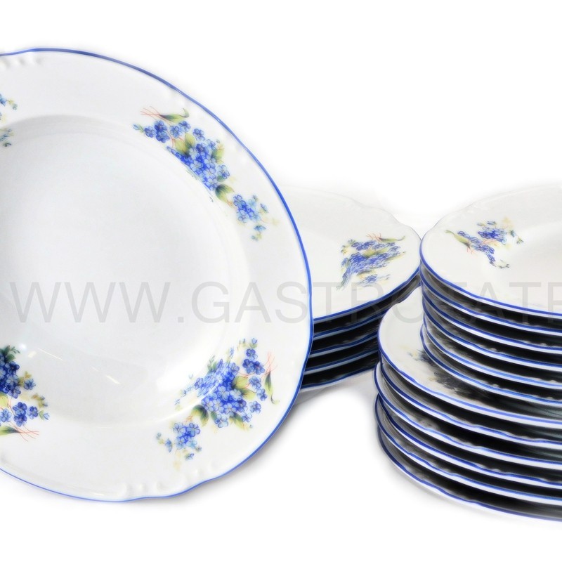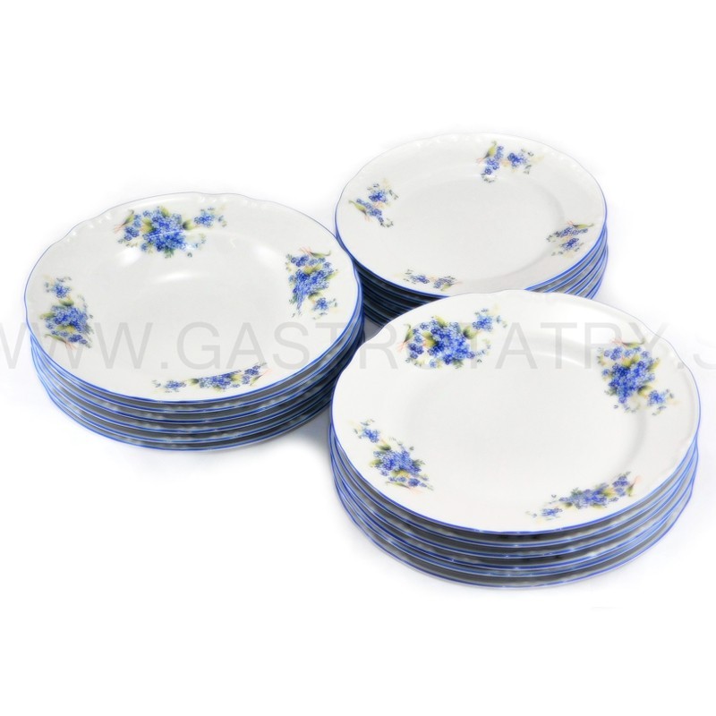 Karlovarský porcelán CONSTANCE nezábudka modrá linka tanierová súprava 18 dielov, je vhodná do mikrovlnnej rúry a umývačky riadu.