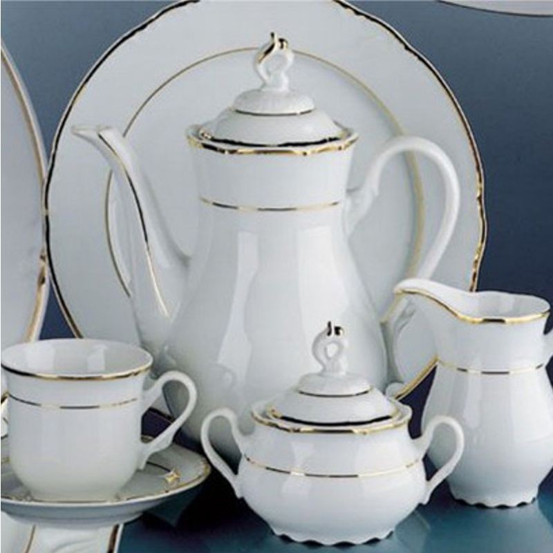 Karlovarský porcelán - Šapo šálky s podšálkami zlaté linky 135 Constance 12 dielne. Nie je vhodné do umývačky riadu ani do mikrovlnnej rúry.