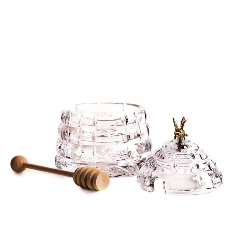 Dóza na med 320 ml Včelí úľ (krištáľ). Dóza z kvalitného českého krištáľu s vysokým leskom (obsahuje 24%PbO). Vhodná na každodenné použitie, rovnako aj na špeciálne príležitosti alebo ako praktický a nadčasový darček. Balené v elegantnom tmavomodrom kartóne. Balenie obsahuje drevenú paličku na med. Výrobca Crystal BOHEMIA, a.s.