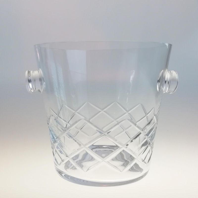Nádoba na ľad 13 cm handmade. Ice bucket- nádoba na ľad z exkluzívnej ručnej výroby. Sklenené "vedierko" má v spodnej časti ručnú brúsenú a leštenú dekoráciu a na bokoch dva úchyty pre jednoduchšiu manipuláciu. Servírovaním ľadu v tejto nádobe povznesiete zážitok z dobrého nápoja a umocníte výnimočnú atmosféru.