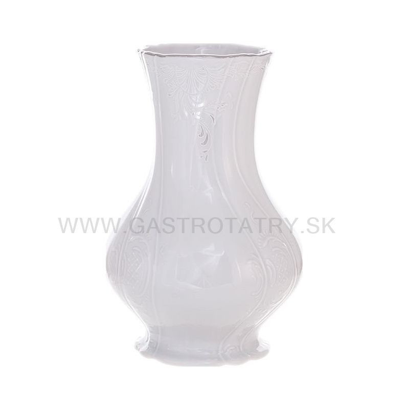 Karlovarský porcelán - Bernadotte váza, výška 230 mm damašek platinová linka. Nie je vhodná do mikrovlnnej rúry ani do umývačky riadu.