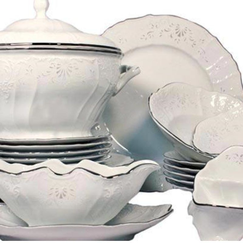 Obsahuje: 1x misa polievková s vekom 2,5 l, 1x omáčnik s podšálkou, 1x misa kompótová 25 cm, 1x misa kompótová 23 cm, 1x misa oválna 34 cm, 1x misa plytká 30 cm, 6x tanier plytký 25 cm, 6x tanier hlboký 23 cm , 6x tanier dezertný 19 cm, 1x soľnička-korenička 2 dielna