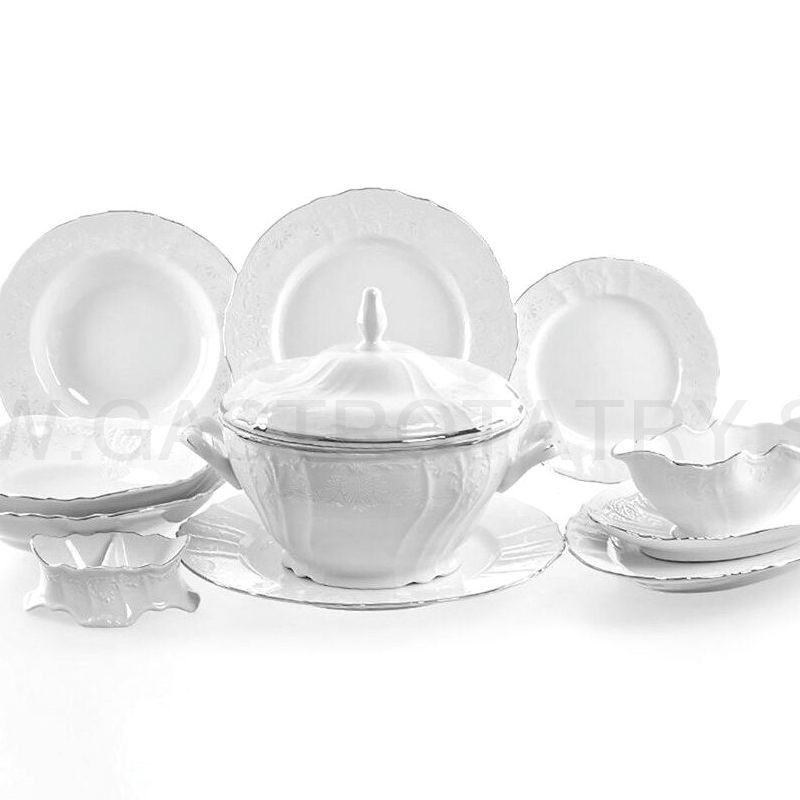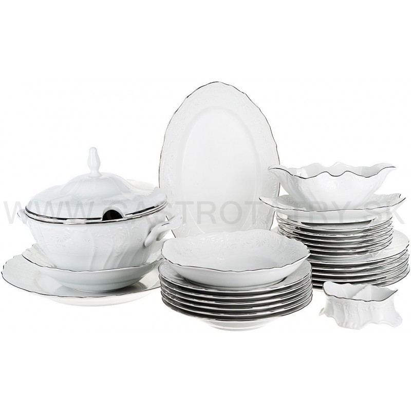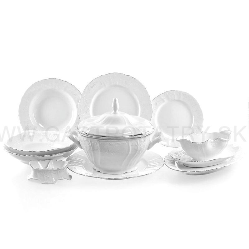 BERNADOTTE damašek (svadobný dekor) + platinová linka obedová súprava 26 dielna,