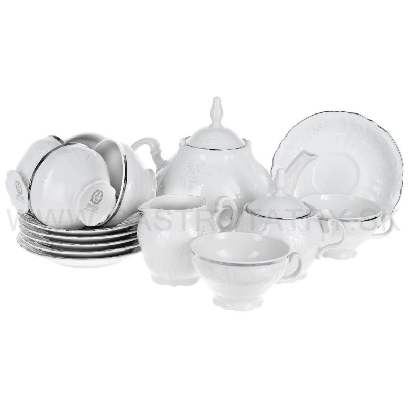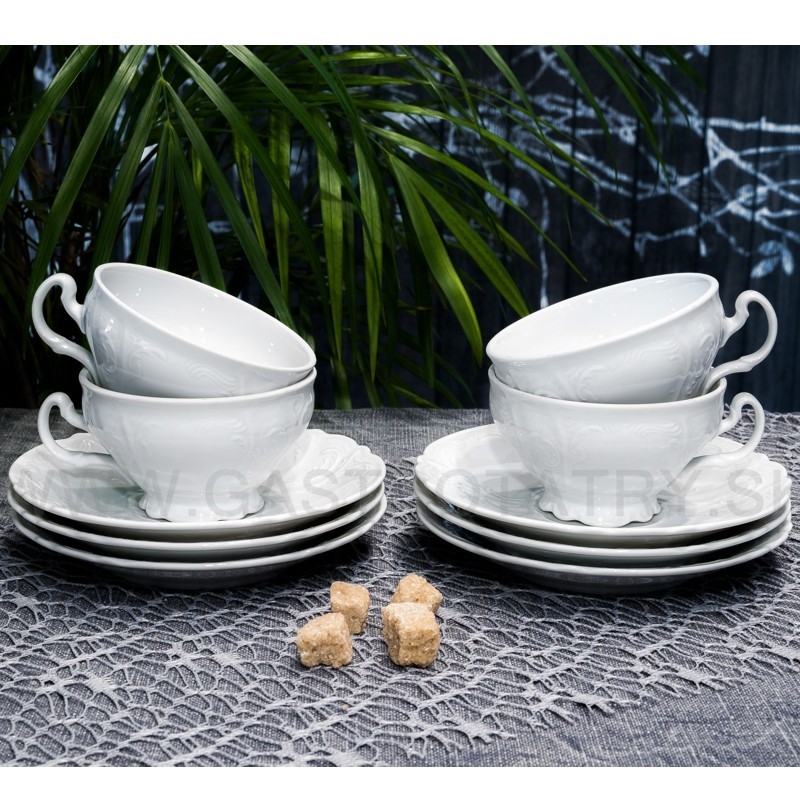 Šálky s podšálkami čajové 155 damašek platinová linka Bernadotte 12 dielna. Obsahuje: 6x šálka, objem 205 ml, podšálka, priemer 155 mm