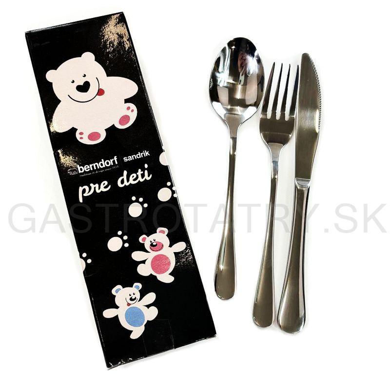 Materiál je Chrómová oceľ 18/0 Balenie je darčekový kartón s medvedíkom