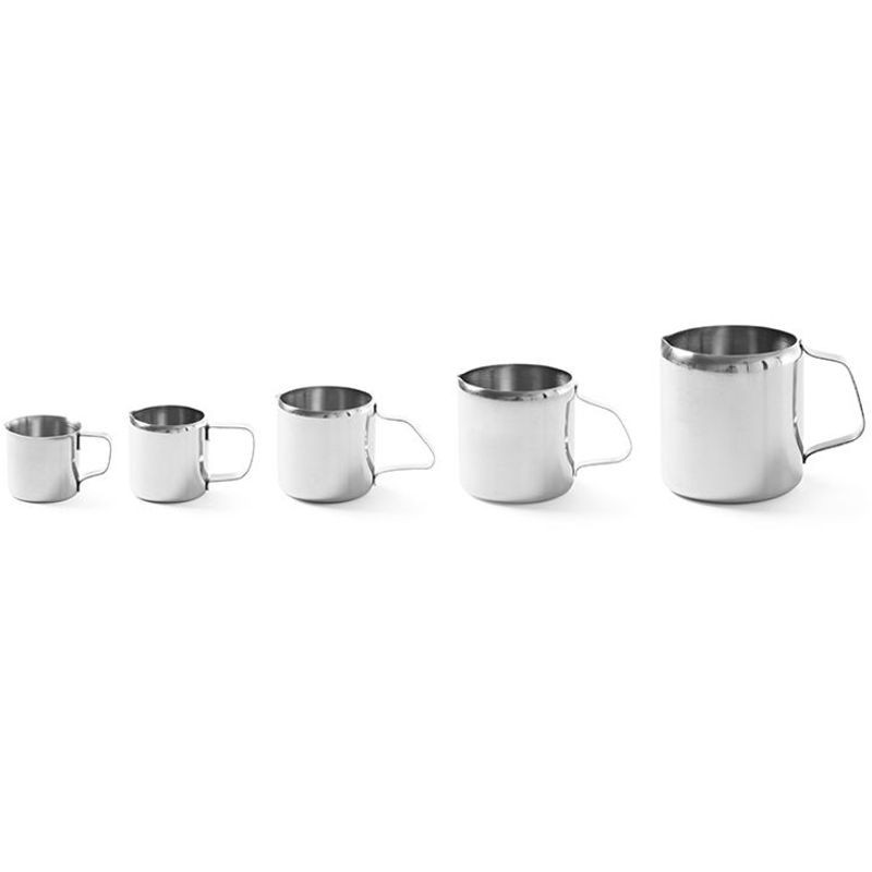 Džbánik na smotanu, výška 3,5 cm, priemer 3,5 cm, objem 0,02 l. Vyrobené z nehrdzavejúcej ocele. Tvarujte pomocou ľahko nalievateľného výtoku navrhnutého pre čistú a efektívnu prácu. Vhodné do umývačky riadu.