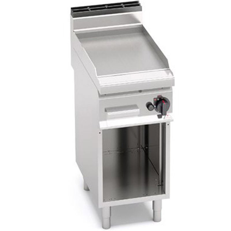 Plynová grilovacia platna BERTO´s hladká ▪ grilovacia plocha z hrubej nerezovej platne AISI 304 ▪ zberný žľab s prepadovým otvorom do zbernej zásuvky na tuk ▪ pomocou teflónovej zátky na uzavretie prepadového otvoru je možné použiť grilovaciu platňu ako panvicu (zátka je voliteľná) ▪ pri elektrickom grile regulácia teploty od 160°C do 320°C (7 polohový regulátor)