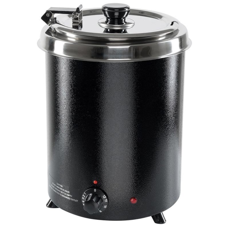 E-Kotlík na polievky MINI. Rozmery: Ø280 x 340 mm, objem 5,7 l. Prípojka/Príkon V/kW 230/0,3 ▪ kotol, pokrievka a nádoba na vodu z nerezu ▪ vonkajšia konštrukcia: povrchovo upravená oceľ ▪ špirála s termostatom
