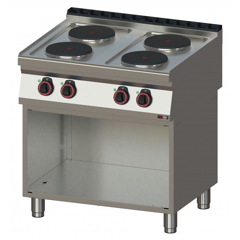 Rozmer: 800x700x900 mm (šxhxv), príkon elektro: 10,4 kW/400 V, elektrický príkon platní: 4x2,6 kW, počet platní: 4 ks, priemer platne: 220 mm, na otvorenom podstavci, príslušenstvo na objednávku: - dvere.