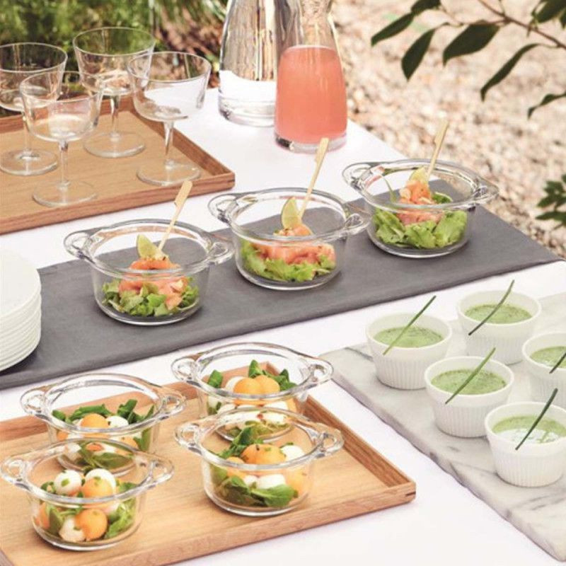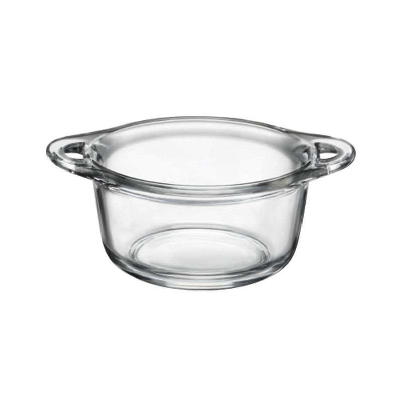 Bormioli Rocco Buffet Pentolino miska s ušami, priemer 16,7 cm, sklenená. Sklenená miska v tvare kastrólika je vhodná na servírovanie teplých a studených pokrmov v bufetoch alebo priamo na stôl. Miska je vyrobená z tvrdeného skla, čo znamená že je odolnejšie voči nárazom a náhlym teplotným rozdielom. Vhodná na horúce pokrmy.