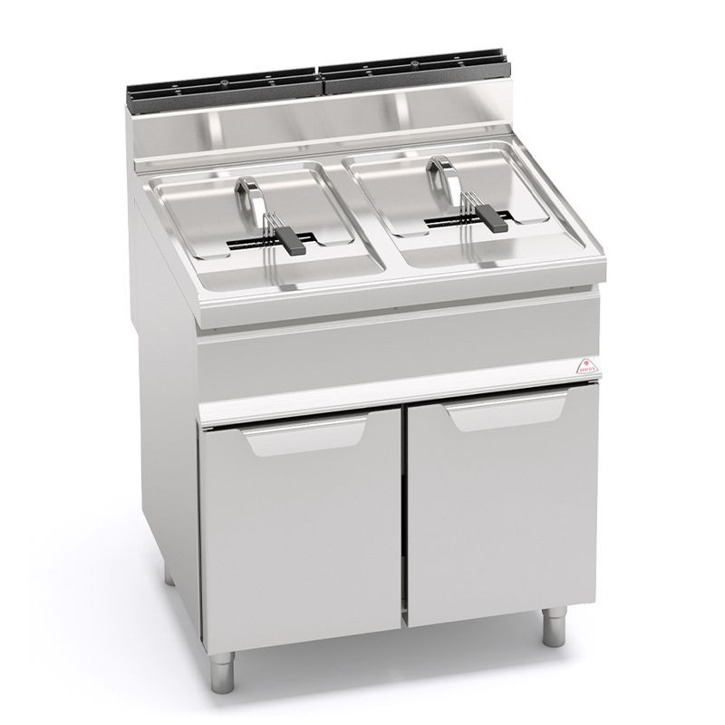 Plynová fritéza BERTO´s, objem 2 x 15 l ▪ horáky umiestnené vo vani (možnosť objednať aj fritézy s nepriamym ohrevom vane) ▪ s výpustným ventilom a nádržkou na znečistený olej (1 ks aj pri dvojitých fritézach) ▪ termoregulácia do 190°C s poistným termostatom ▪ nerezové horáky s piezoelektrickým zapaľovaním a pilotným plameňom