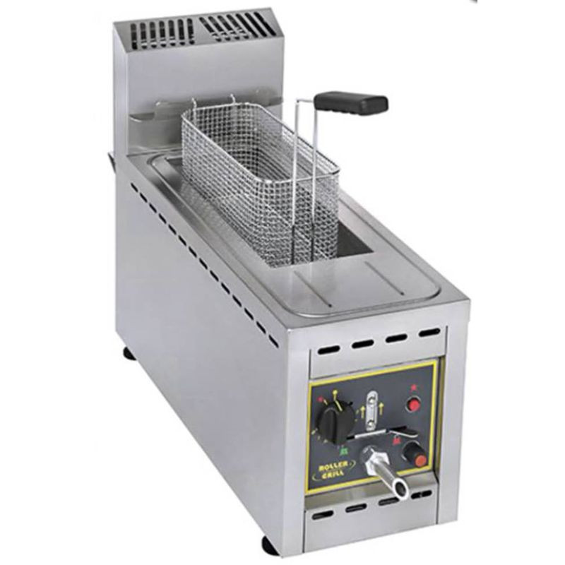 Plynová stolová fritéza s objemom 8 l z nehrdzavejúcej ocele vhodná nielen pre rýchle občerstvenie, ale pre všetky typy gastronomických prevádzok. Citlivý regulátor umožňuje presné nastavenie pracovnej teploty. Perforovaný spodok nádoby pre fritovanie aj bez košíka. Rukoväť košíka vyrobená z tepelne odolného materiálu. Fritéza má výpustný ventil na olej, piezo-elektrické zapaľovanie, kontrolu plameňa, bezpečnostný systém.