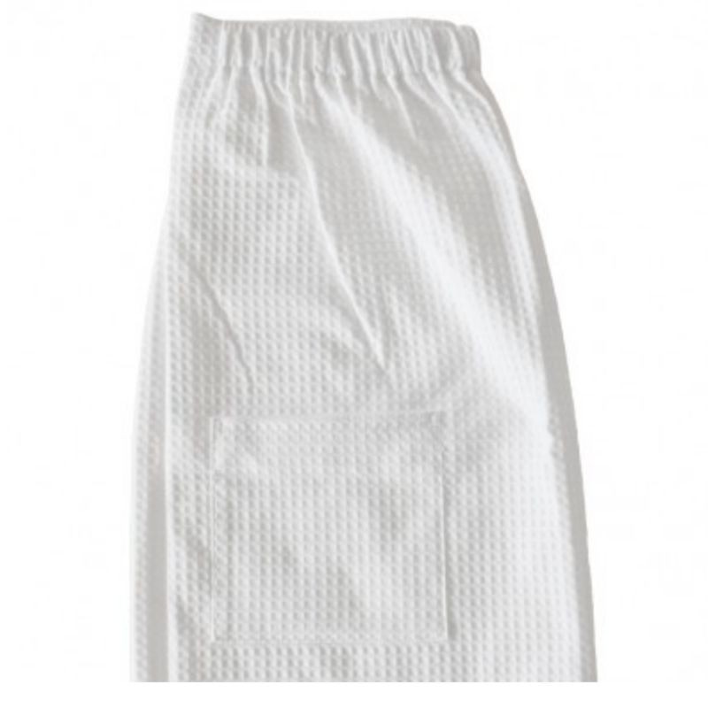 Zavinovacia sukňa do sauny dámska. Zahaľovacia sukňa do sauny a welnnessu. Vaflový materiál - 100% bavlna. Univerzálna veľkosť - zapínanie na suchý zips. Rozmer: 80x150 cm