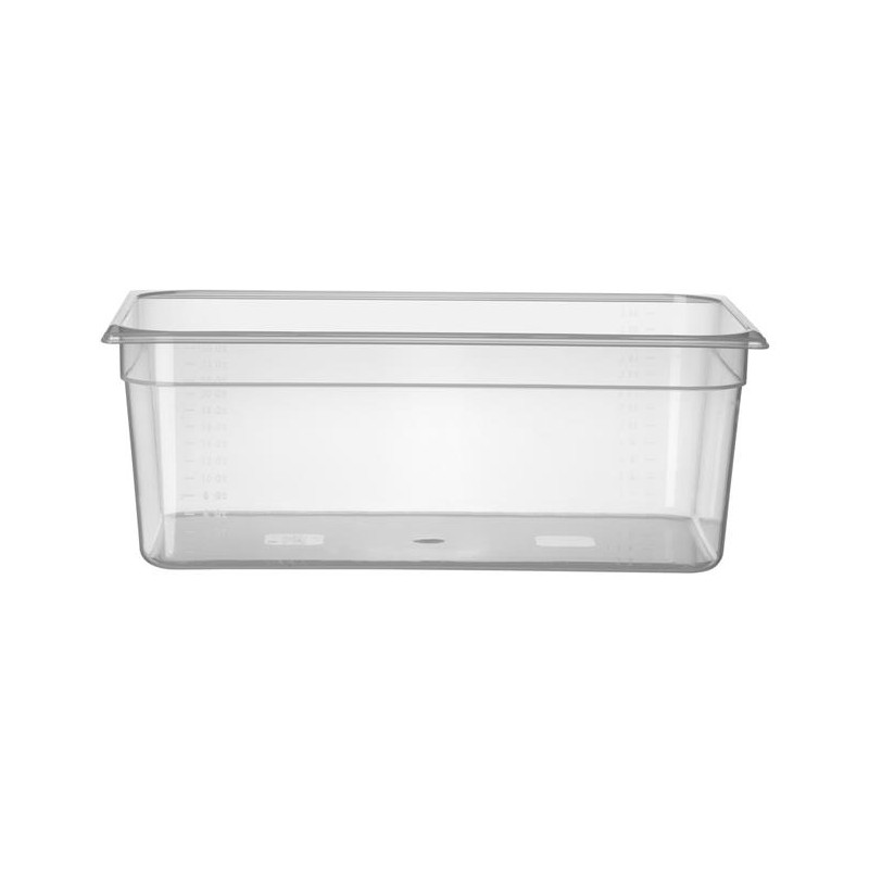 GN 1/1 polypropylénová nádoba - výška: 200 mm, objem: 28 l, rozmer: dĺžka 530 x šírka 325 mm. Profesionálne vysoko kvalitné GN nádoby z polypropylénu. Neabsorbujú zápachy chute. Polopriehľadné Bezfarebné. Odolné voči teplote od -40 °C do 80 °C.
