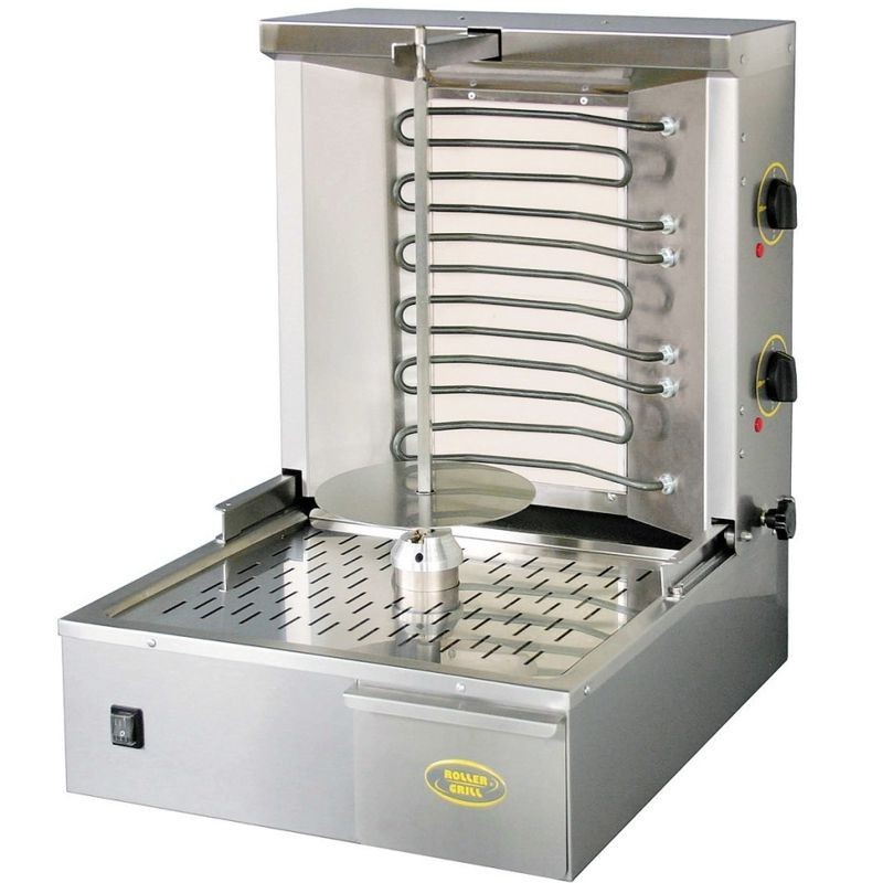 Elektrický gril na pečenie mäsa na otočnej ihlici (400 mm) vo vertikálnej polohe. Nezávislé ovládané 3 výhrevné telesá s reguláciou výkonu na polovičný alebo maximálny výkon. Posuvná zadná časť umožňuje nastavenie vzdialenosti výhrevných telies od mäsa. Inovácia pohonu ihlice a odvádzania mastnoty znižuje poruchu motora a pravdepodobnosť preťaženia na minimum. Možnosť objednať bočné nerezové, ako aj predné presklenné kryty pre hygienické uzatvorenie, BG1 - sadu ihlíc na pečenie kurčiat a BG2 - sadu ihlíc na pečenie ražniči.