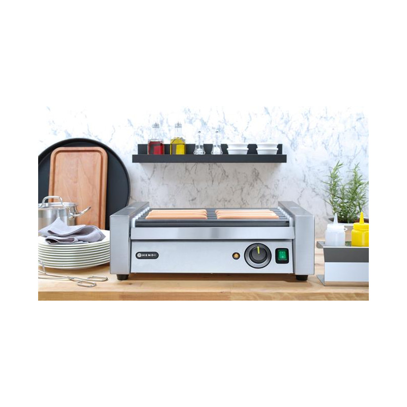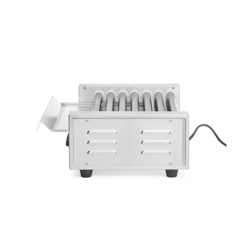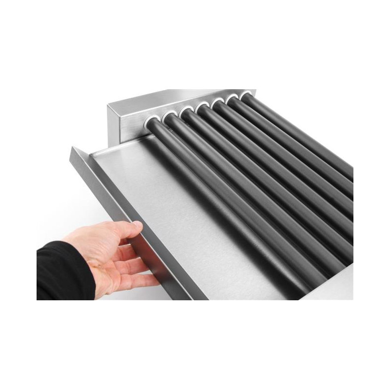 Korpus z nehrdzavejúcej ocele 7 valčekov. Rýchle zahrievanie a rekuperácia tepla. Valčeky pokryté nepriľnavou vrstvou. Vyberateľný, ľahko čistiteľný odkvapkávací podnos na tuk a zvyšky
