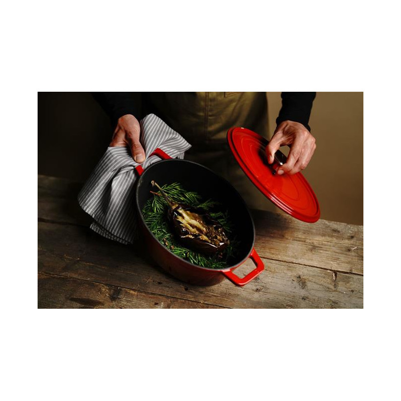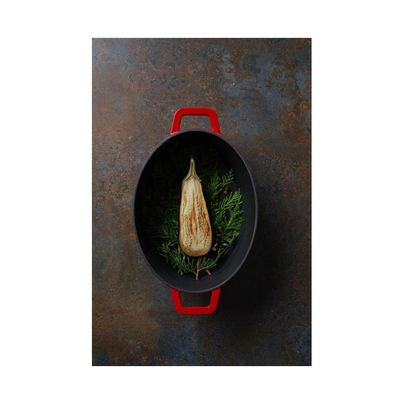 Liatinový smaltovaný kastról, objem 3,7 l, červený. Rozmery 317x240x(H)105 mm