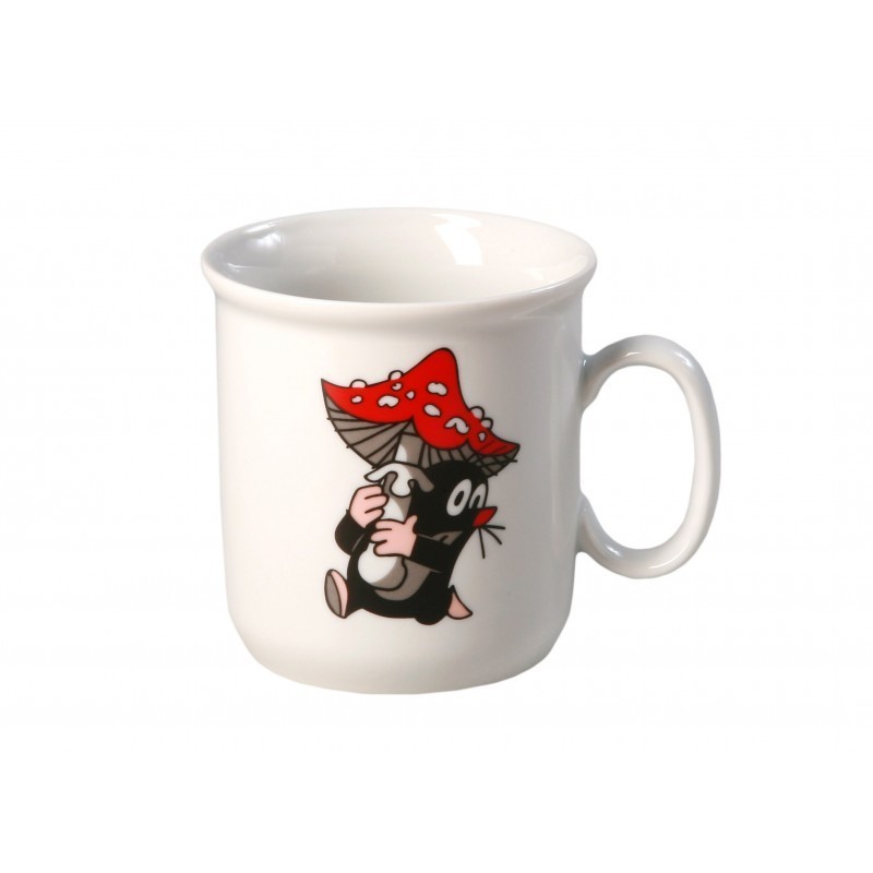 Karlovarský porcelán. Krtko hrnček - muchotrávka (Gaston), výška: 8,00 cm, priemer: 8,00 cm.