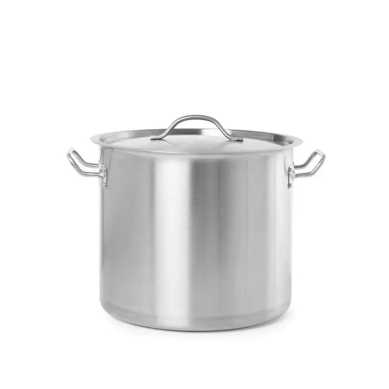 Hrniec vysoký s pokrievkou BudgetLine 50 l. Sendvičové dno (nerezová oceľ / hliník / nehrdzavejúca oceľ 18/0) kombinuje vodivé vlastnosti hliníka s odolnosťou a magnetickými vlastnosťami nerezovej ocele, čo umožňuje aj použiť hrnce pre indukčné varenie.