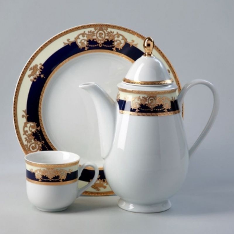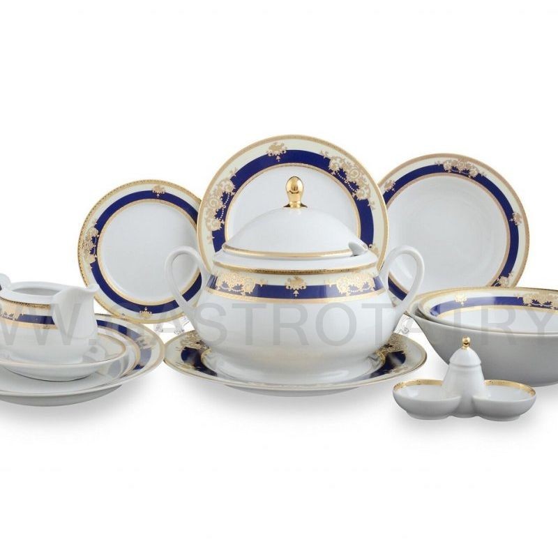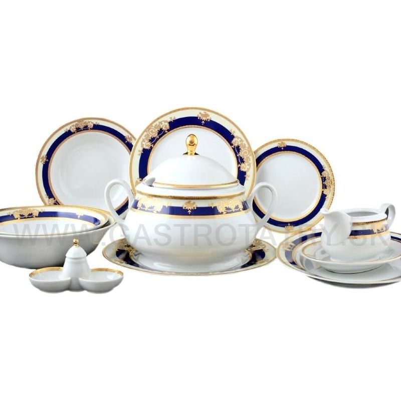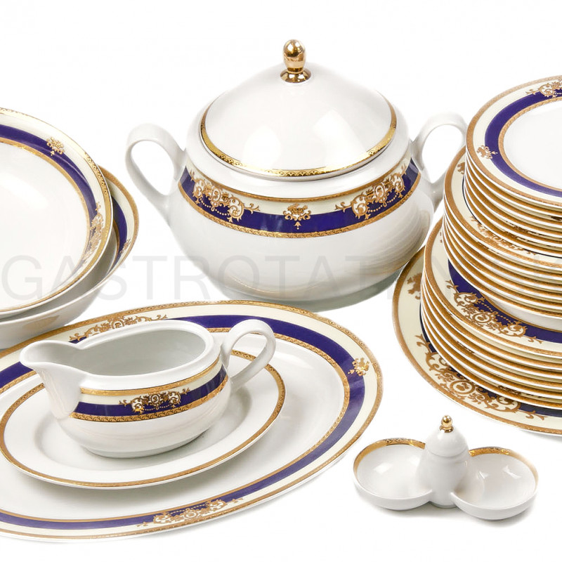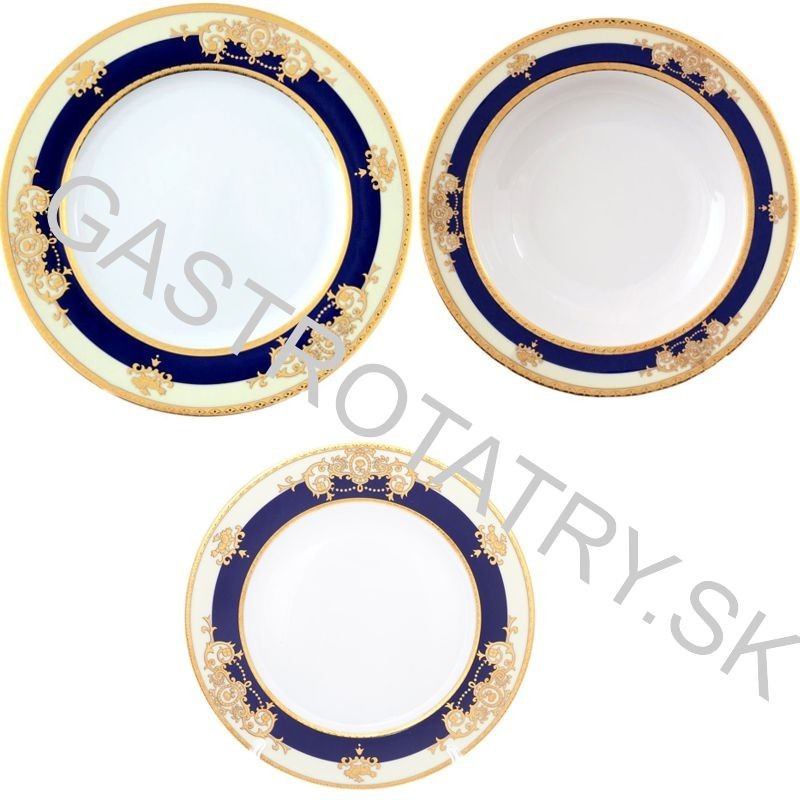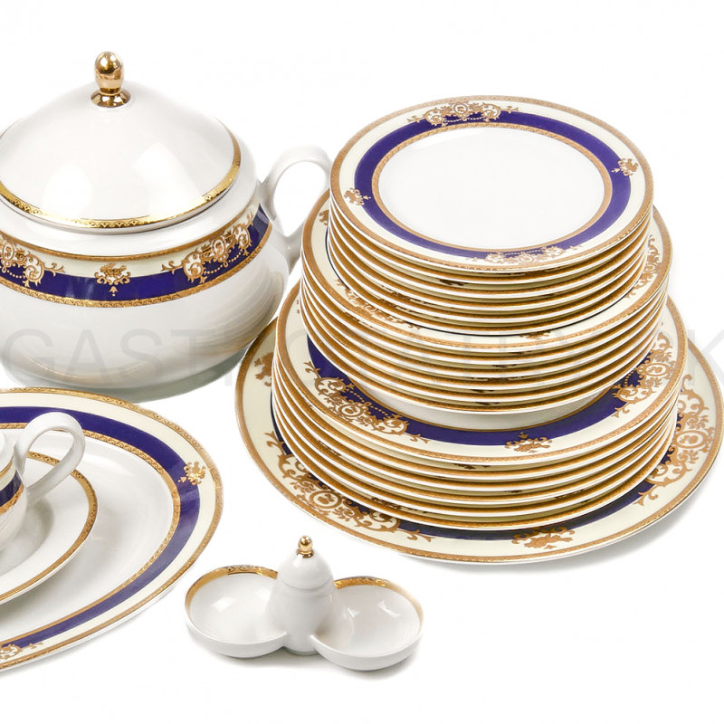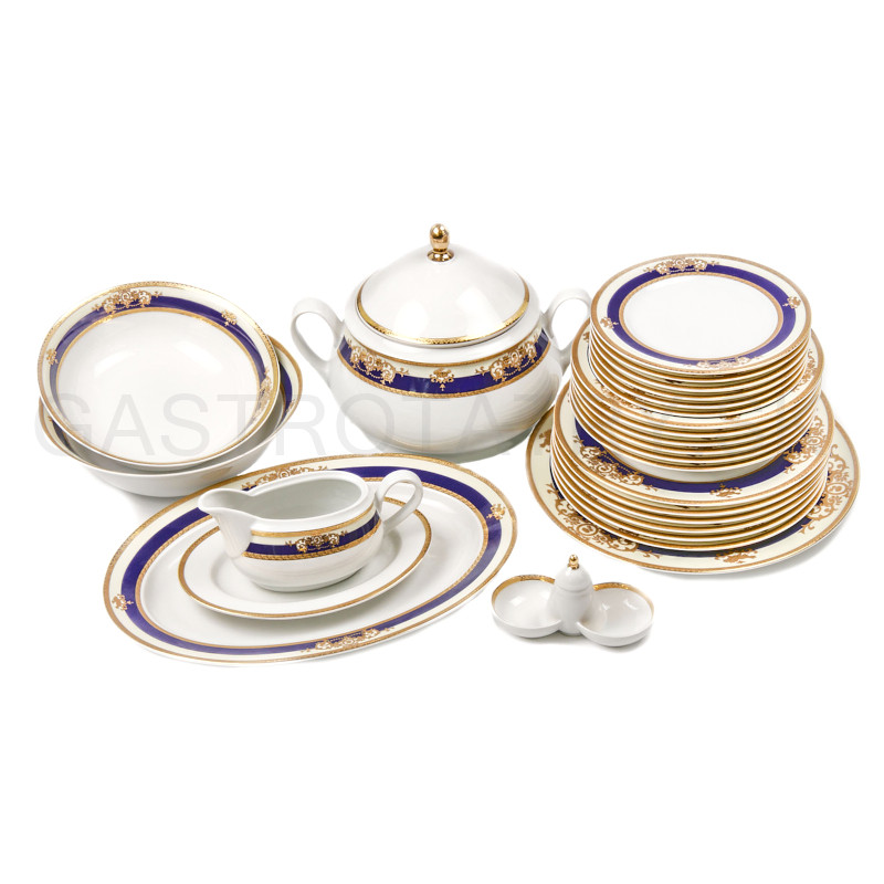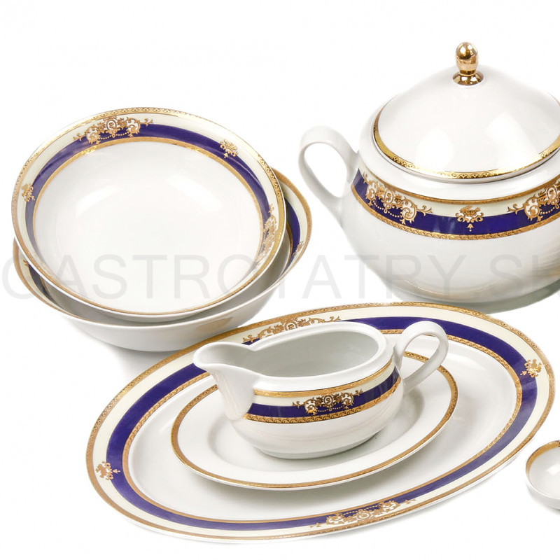 Luxusná obedová súprava JANA - Zlato - kobaltovo modrá, 27-dielna