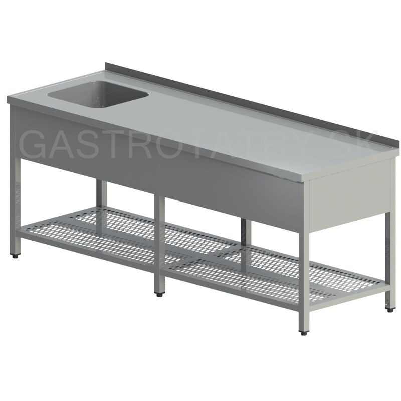 Umývací stôl s drezom a perforovanou policou dlhý, krytý