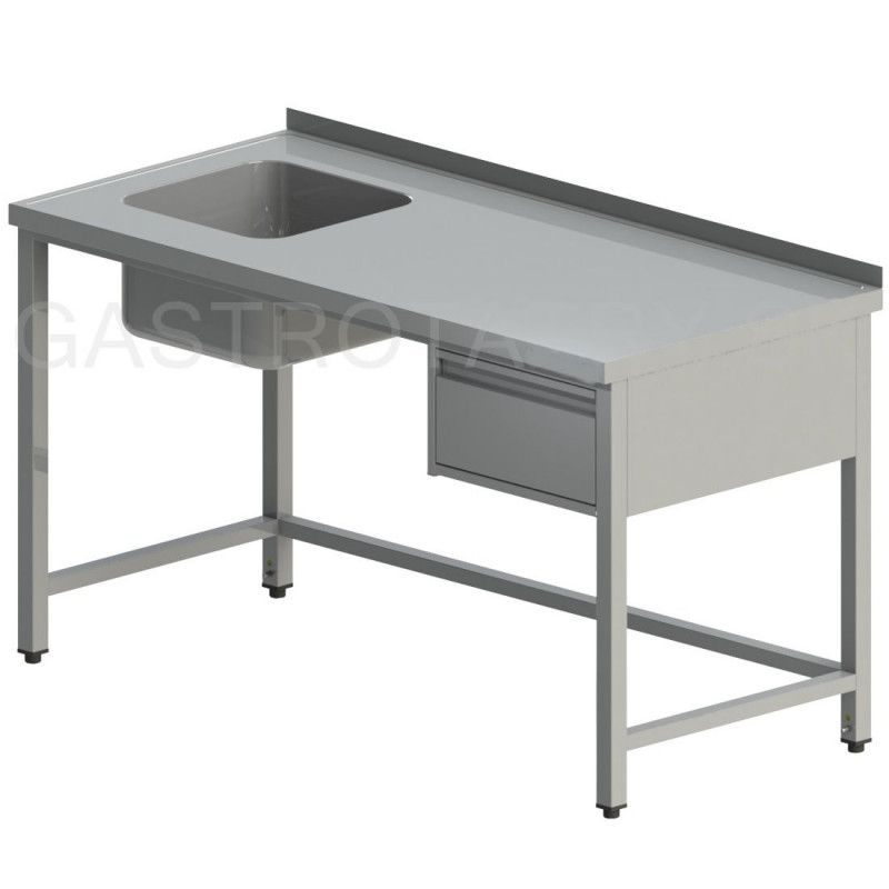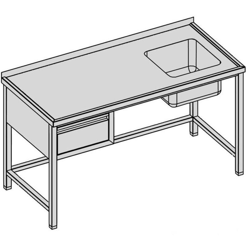 Umývací stôl s drezom a zásuvkou, hĺbka 600, 700, 800 mm, šírka 1000 - 1900 mm, výška stola štandardne 850 mm ▪ možnosť vyhotovenia bez zadného lemu ▪ 1x zásuvka