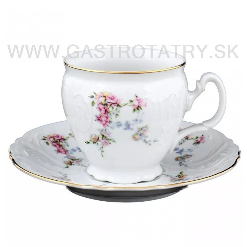 Bernadotte šálky s podšálkami 160/6 Jemné ružové kvety + zlatá linka 12 dielna.